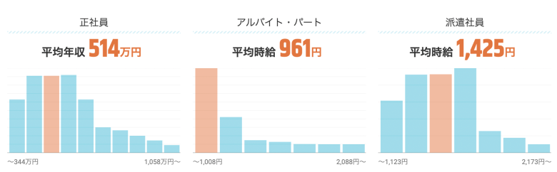 | 求人ボックス(正社員) | 平均年収514万円 |