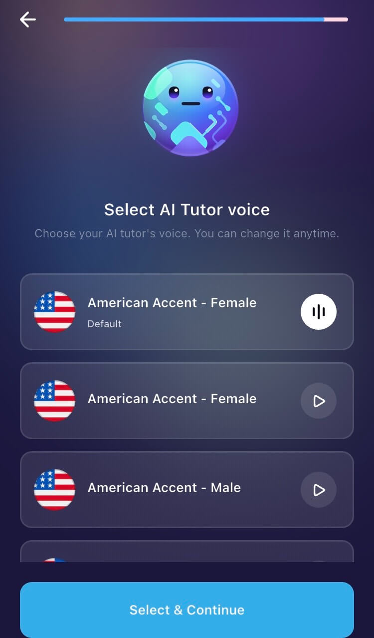 会話の相手となるAIも、アメリカ女性のアクセントや、イギリス男性のアクセントなど、具体的にどの国の発音を学びたいか選べた点がよかったです。
