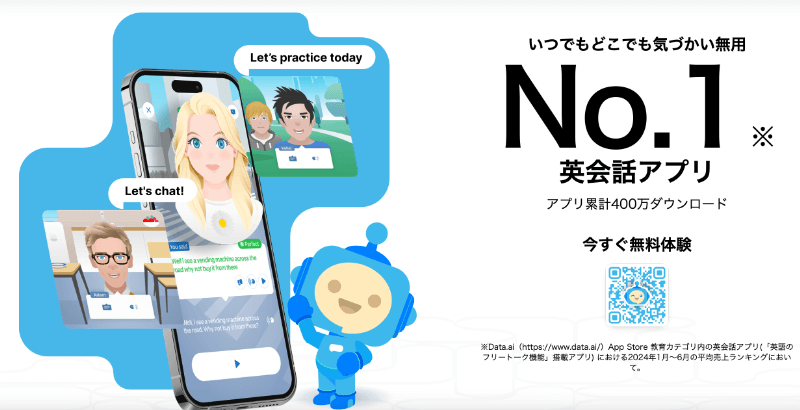 - 利用者数400万人突破!大人気のAI英会話アプリ